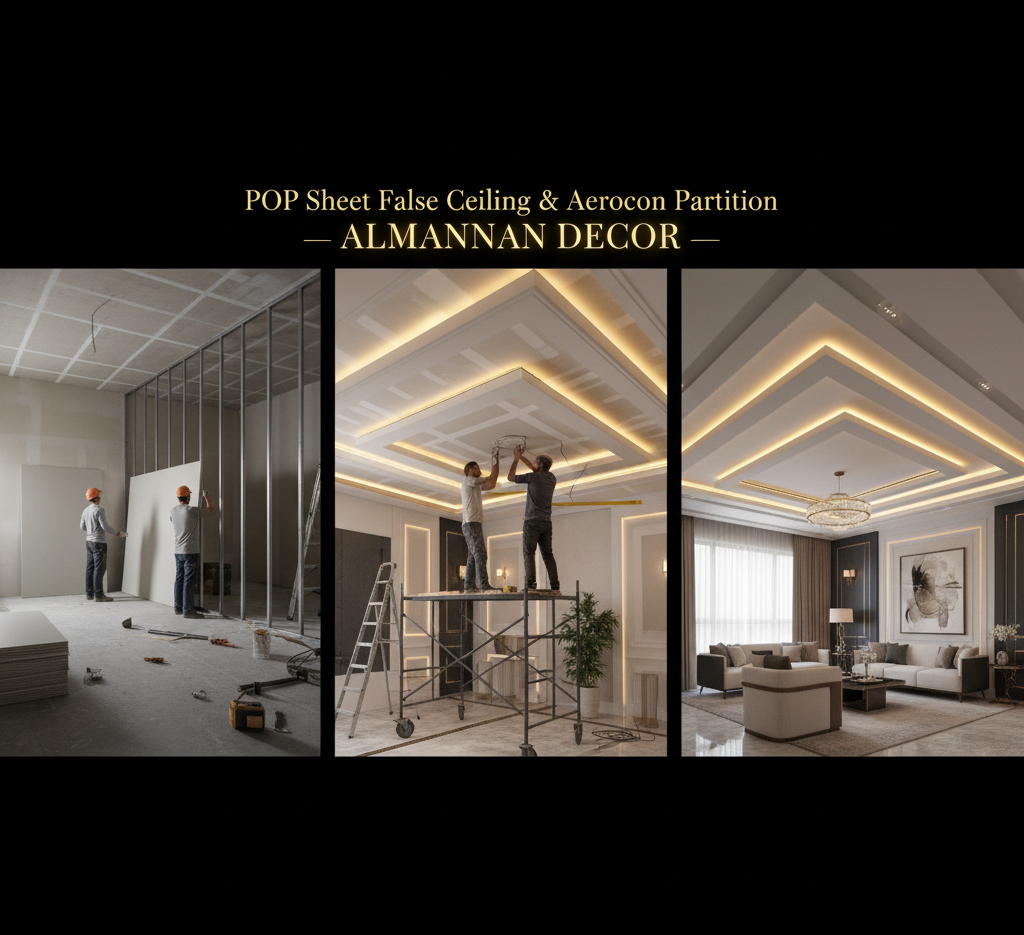 At the heart of ALMANNAN DECOR lies a commitment to innovation, integrity, and unparalleled craftsmanship in every gypsum, POP, and partitioning project.