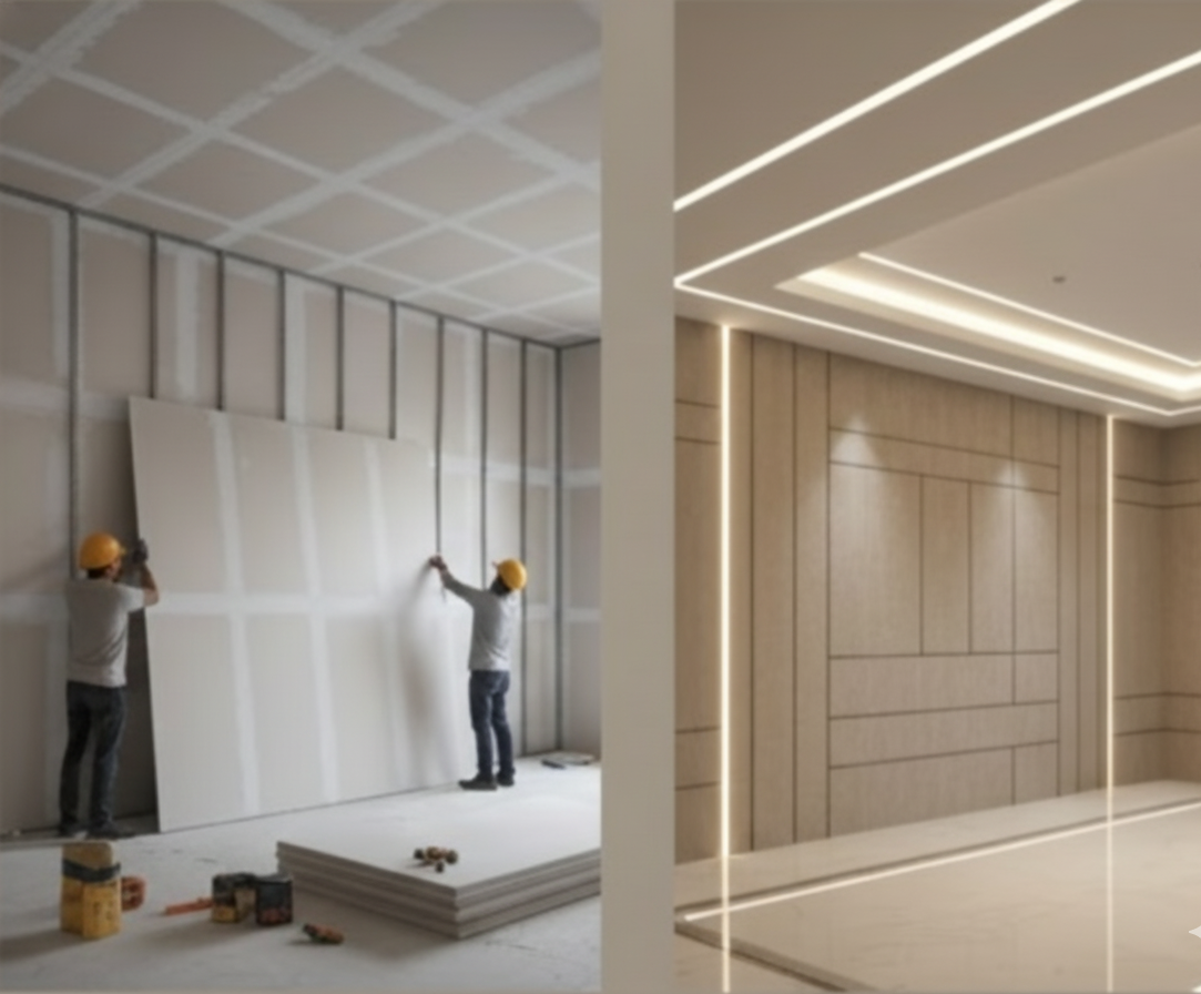 Create flexible, soundproof divisions in your interiors using gypsum sheet partitions. These versatile walls offer privacy without compromising on design, perfect for offices, homes, and retail spaces.